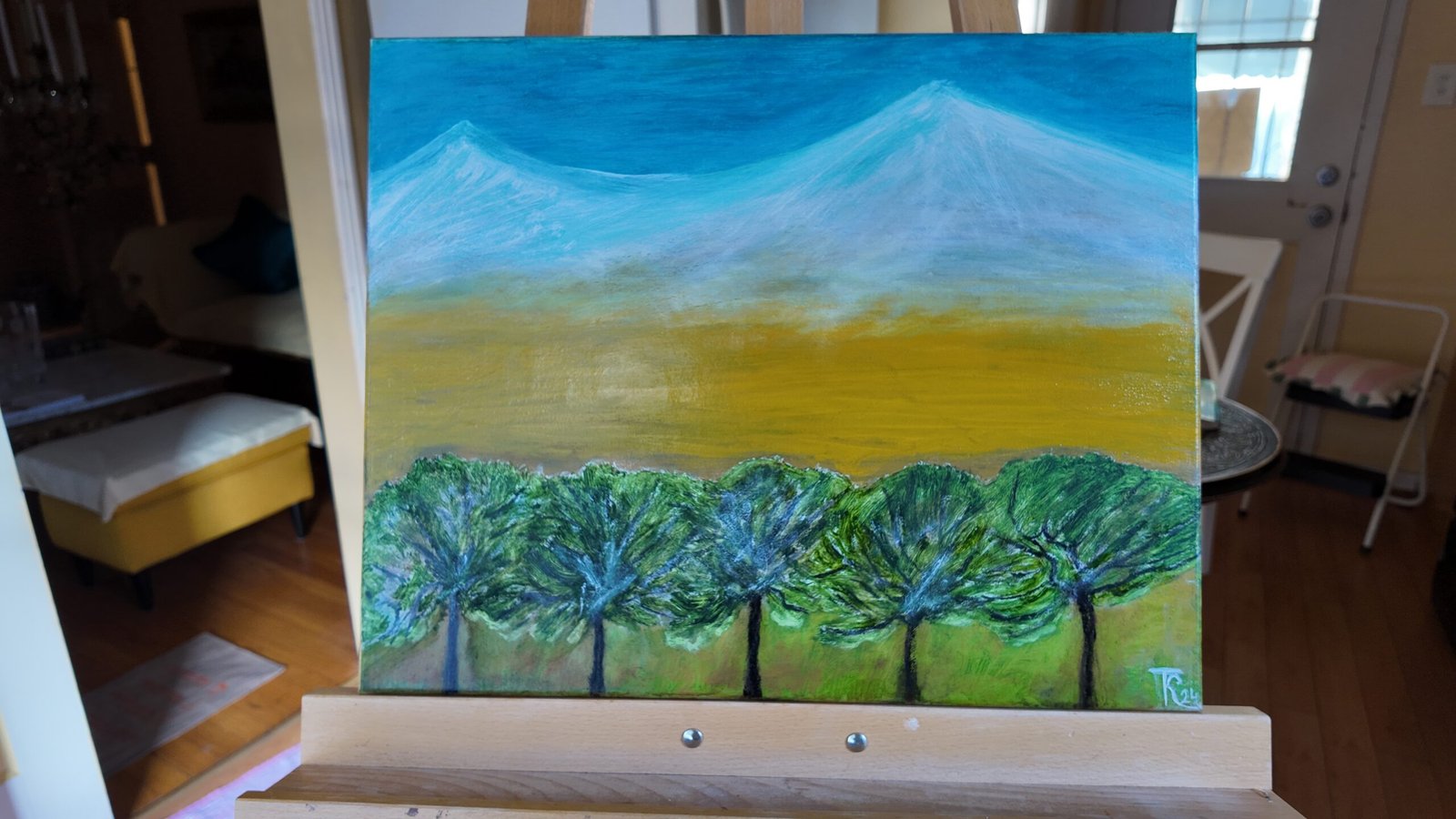 Immerse yourself in the vibrant soul of the Caucasus with this striking original acrylic painting. More than just a scenic view, this work is a contemporary continuation of the Armenian National Landscape tradition, channeling the spirit of masters like Martiros Saryan and Minas Avetisyan.
